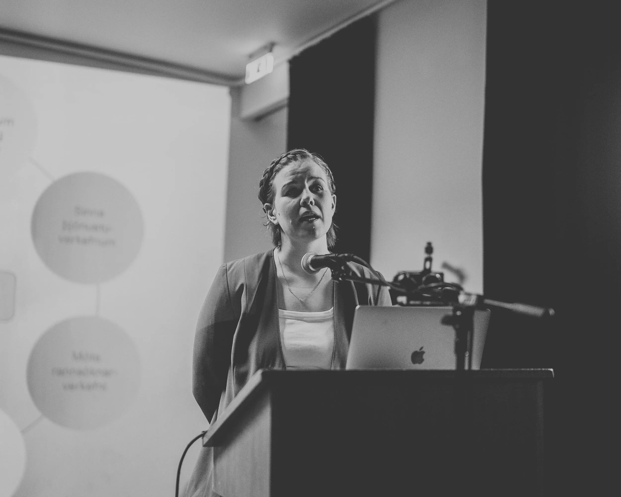 Erla Rún á fyrsta málþingi RSG í mars 2024. Ljósmyndari: James Einar Becker.